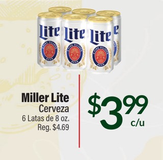 Miller Lite Cerveza 6 Latas de 8 oz.