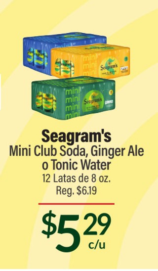Seagram's Mini Club Soda, Ginger Ale o Tonic Water 12 Latas de 8 oz.