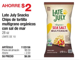Late July Snacks Chips de tortilla multigrano orgánicos con sal de mar 28 oz LÃMITE DE 10