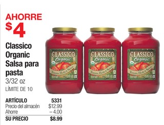 Classico Organic Salsa para pasta 3/32 oz LÃMITE DE 10