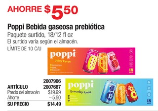 Poppi Bebida gaseosa prebiótica Paquete surtido, 18/12 fl oz El surtido varÃa según el almacén. LÃMITE DE 10 C/U
