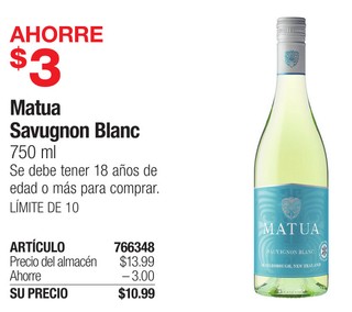 Matua Savugnon Blanc 750 ml. Se debe tener 18 años de edad o mas para comprar. LIMITE DE 10.