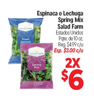 Espinaca o Lechuga Spring Mix Salad Farm Estados Unidos Pqte. de 10 oz.