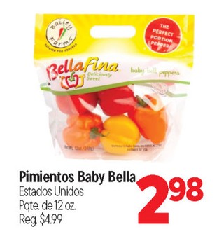 Pimientos baby bella Estados Unidos. Pqte. de 12 oz.