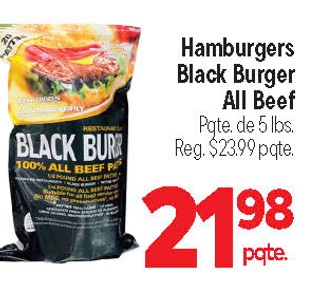 Hamburgers Black Burger All Beef Pqte. de 5 lbs.
