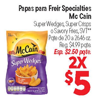 Papas para FreÃr Specialties Mc Cain Super Wedges, Super Crisps o Savory Fries, SVT** Pqte de 20 a 26.46 oz.