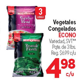 Vegetales Congelados ECONO Variedad, SVT** Pqte. de 3 lbs.
