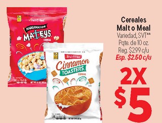 Cereales Malt o Meal Variedad, SVT** Pqte. de 10 oz.
