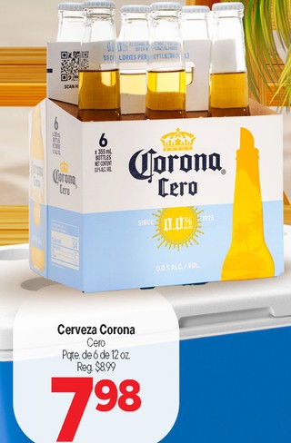 Cerveza corona cero pqte. de 6 de 12 oz.