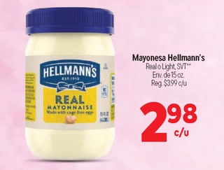 Mayonesa Hellmann's real o light, SVT* env. de 15 oz.