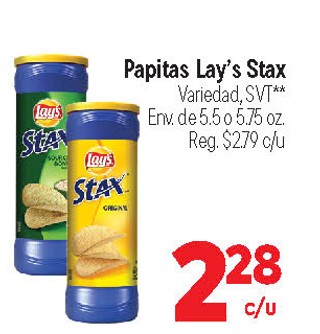 Papitas Lay's Stax variedad, SVT* env. de 5.5 o 5.75 oz.
