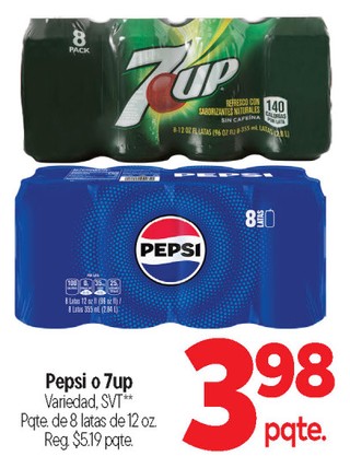 Pepsi o 7up Variedad, SVT** Pqte. de 8 latas de 12 oz.