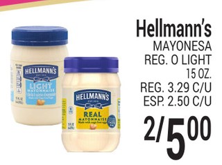 Hellmann's Mayonesa Reg. o Light 15 oz.