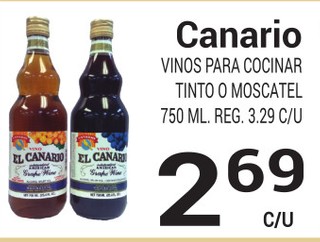 Canario Vinos Para Cocinar Tinto o Moscatel 750 ml.