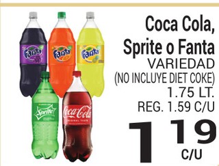 Coca Cola, Sprite o Fanta Variedad (No incluye Diet Coke) 1.75 LT.