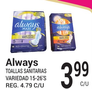 Always Toallas Sanitarias Variedad 15-26's