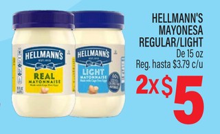 HELLMANN'S MAYONESA REGULAR/LIGHT De 15 oz