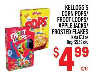 KELLOGG'S CORN POPS/FROOT LOOPS/APPLE JACKS/FROSTED FLAKES Hasta 17.3 oz