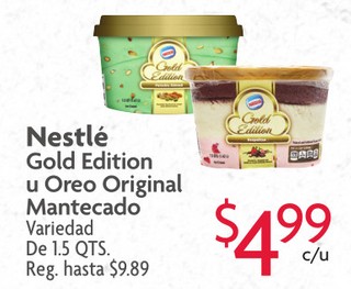 Nestle Gold Edition u Oreo Original Mantecado Variedad De 1.5 QTS