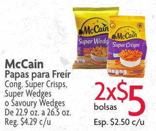 McCain Papas para FreÃr Cong. Super Crisps, Super Wedges o Savory Wedges De 22.9 oz. a 26.5