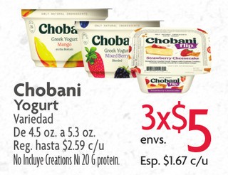 Chobani Yogurt Variedad De 4.5 oz. a 5.3 oz.