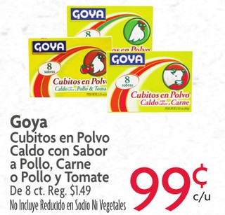 Goya Cubitos en Polvo Caldo con Sabor a pollo, carne o pollo y tomate De 8 ct.