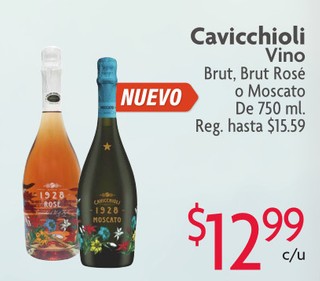 Cavicchioli Vino Brut, Brut Rosé o Moscato De 750 ml.