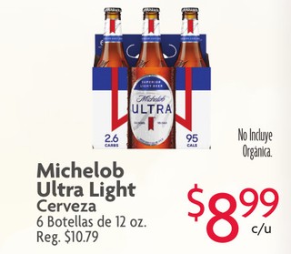 Michelob Ultra Light Cerveza 6 Botellas de 12 oz.