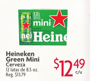 Heineken Green Mini Cerveza 12 latas de 8.5 oz.