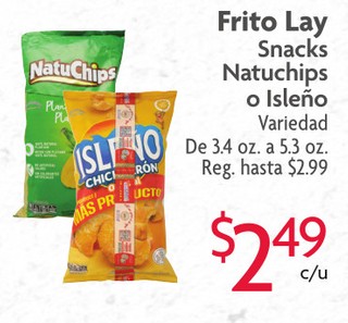 Frito Lay Snacks Natuchips o Isleño Variedad De 3.4 oz. a 5.3 oz.