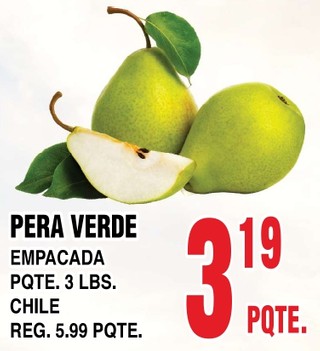 PERA VERDE EMPACADA PQTE. 3 LBS. CHILE