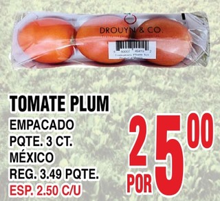 TOMATE PLUM EMPACADO PQTE. 3 CT.