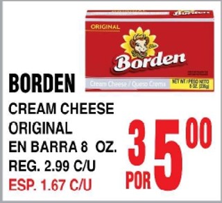 BORDEN CREAM CHEESE ORIGINAL EN BARRA 8 OZ.