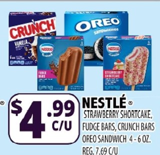 NESTLÉ STRAWBERRY SHORTCAKE, FUDGE BARS, CRUNCH BARS OREO SANDWICH 4-6OZ.