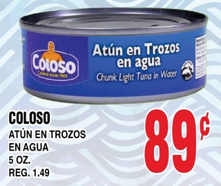 COLOSO ATÚN EN TROZOS EN AGUA 5 OZ.