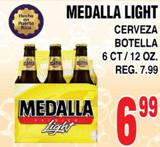 Medalla light cerveza botella 6 ct/ 12 oz.