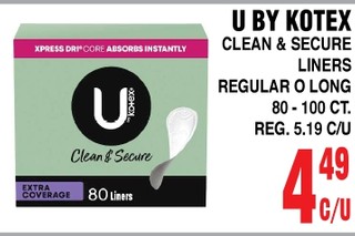 U BY KOTEX CLEAN & SECURE LINERS REGULAR O LONG 80 - 100 CT.