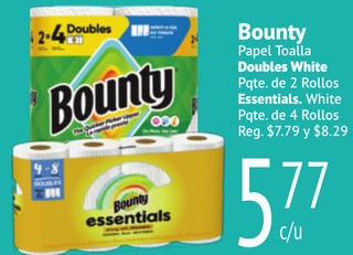 Bounty Papel Toalla Doubles White Pqte. de 2 Rollos Essentials. White Pqte. de 4 Rollos