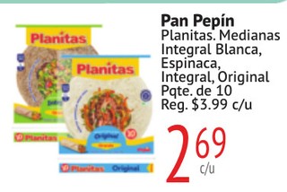 Pan Pepin Planitas Medianas Integral Blanca, Espinaca, Integral, Original Pqte. de 10