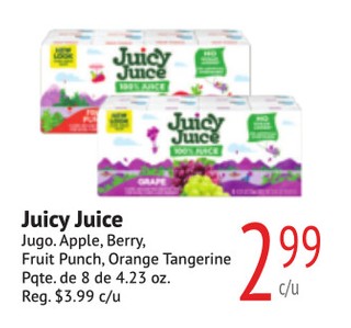 Juicy Juice Jugo. Apple, Berry, Fruit Punch, Orange Tangerine Pqte. de 8 de 4.23 oz.