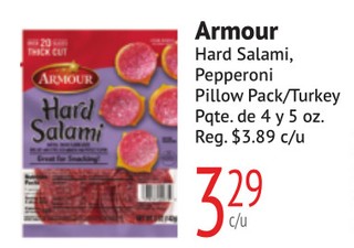 Armour Hard Salami, Pepperoni Pillock Pack/ Turkey Pqte. de 4 y 5 oz.