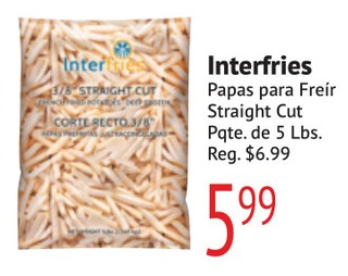 Interfries Papas para Freir Straight Cut Pqte. de 5 Lbs.