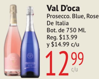 Val D'oca Prosecco Blue, Rose De Italia. Bot. de 750 ml.