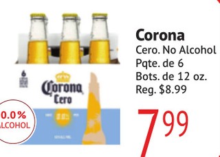Corona Cero No Alcohol Pqte. de 6 Bots. de 12 oz.