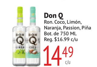 Don Q Ron Coco, Limon, Naranja, Passion, Piña Bot. de 750ml.