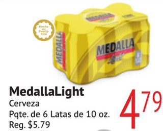 Medalla Light Cerveza Pqte. de 6 Latas de 10 oz.