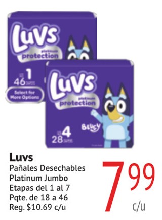 Luvs Pañales Desechables Platinum Jumbo Etapas del 1 al 7 Pqte. de 18 a 46