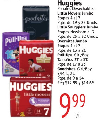 Huggies Pañales Desechables Little Movers Jumbo Etapas 4 al 7 Pqte. de 19 y 22 Unids. Little Snugglers Jumbo Etapas Newborn al 3 Pqte. de 25 a 32 Unids.