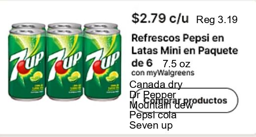 $c/u refrescos pepsi latas mini paquete mywalgreens canada pepper mountain rroductos cola seven