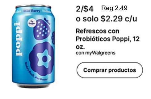 poppi wild berry /$reg $c/u refrescos probióticos mywalgreens comprar productos